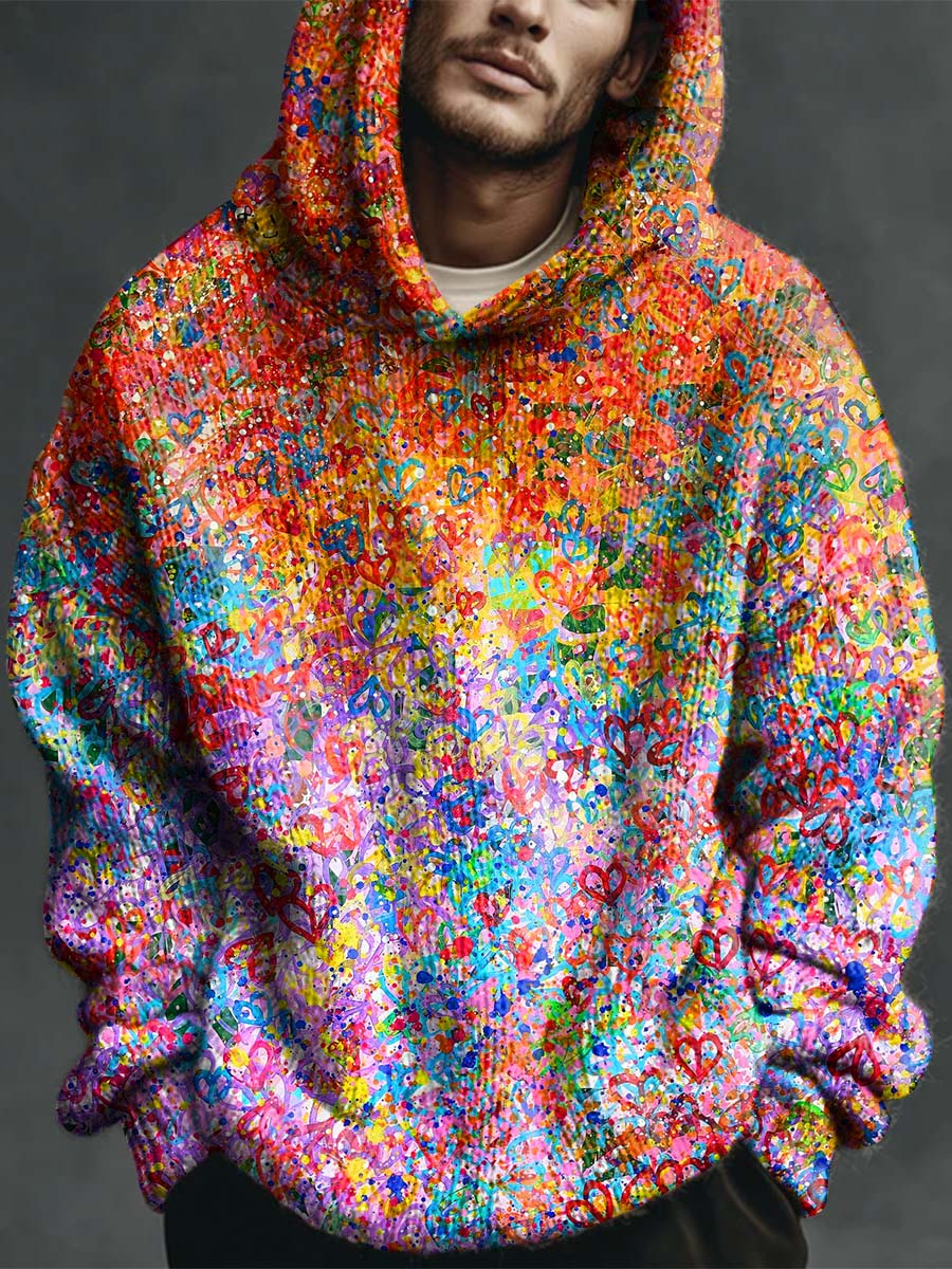 Color Gradient Spots Print Casual Knitted Hoodie Sweater
