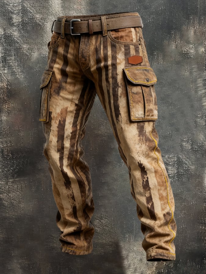 Men's Retro Colorblock Pocket Work Pants