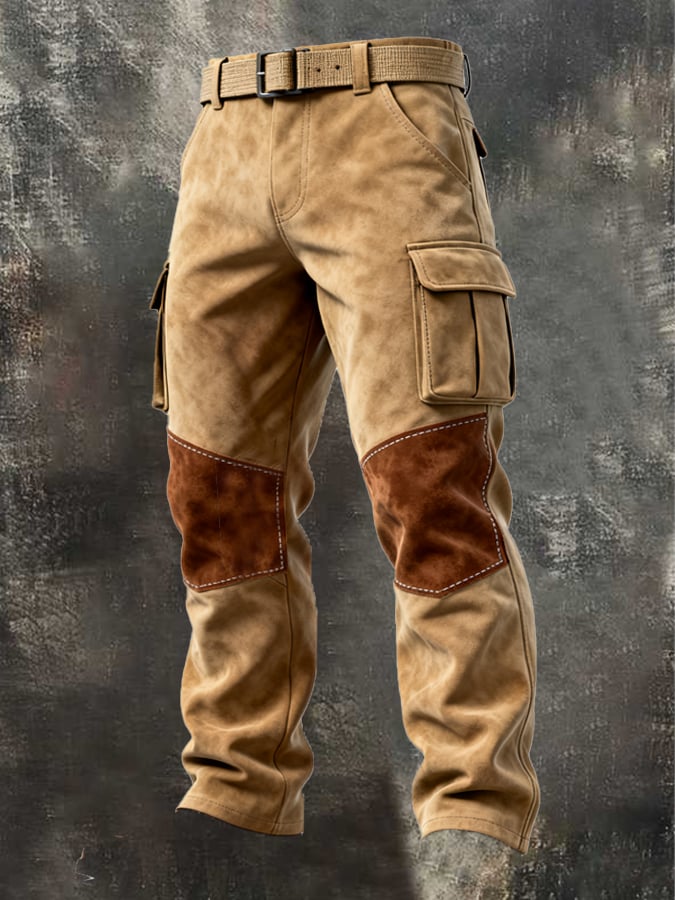 Men's Retro Outdoor Adventure Suede Stitching Multi-function Pocket Work Pants