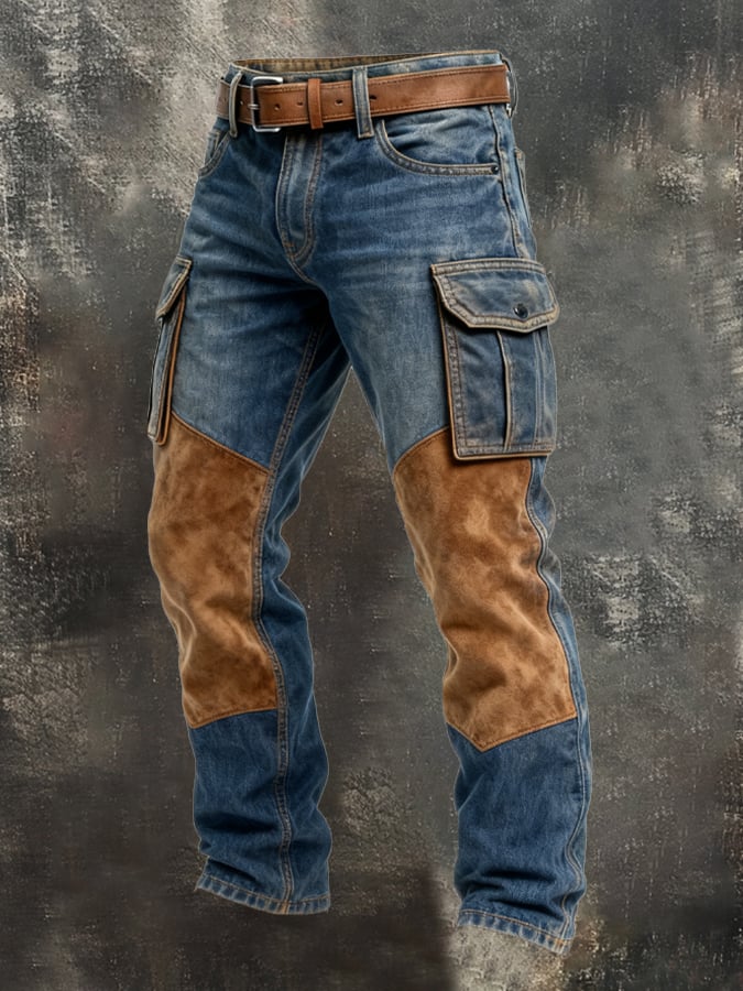 Men's Vintage Outdoor Adventure Knee Pad Denim Work Pants