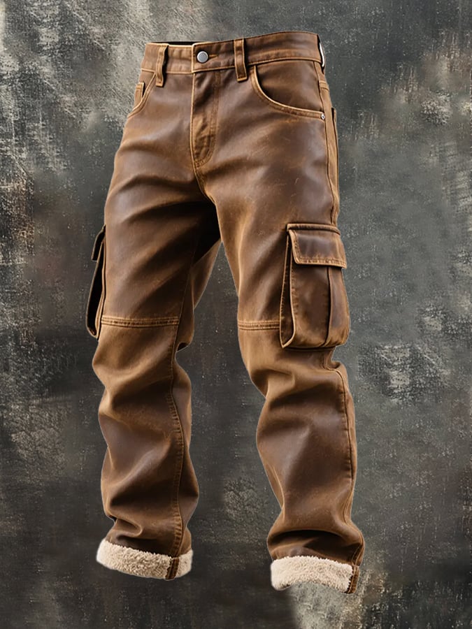 Men's Vintage Warm Brown Wool Lined Cargo Pants