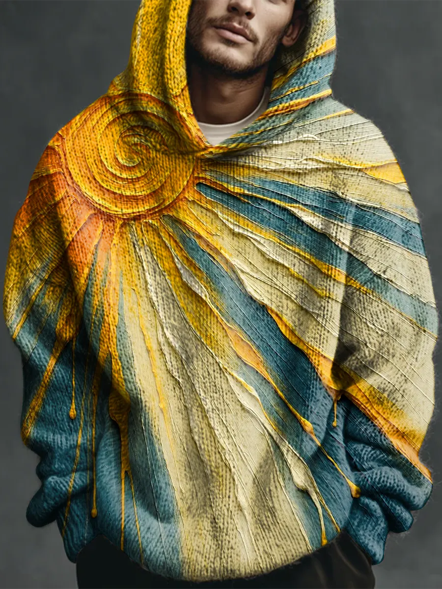 Retro Multicolored Sun Art Print Casual Knitted Hoodie Sweater