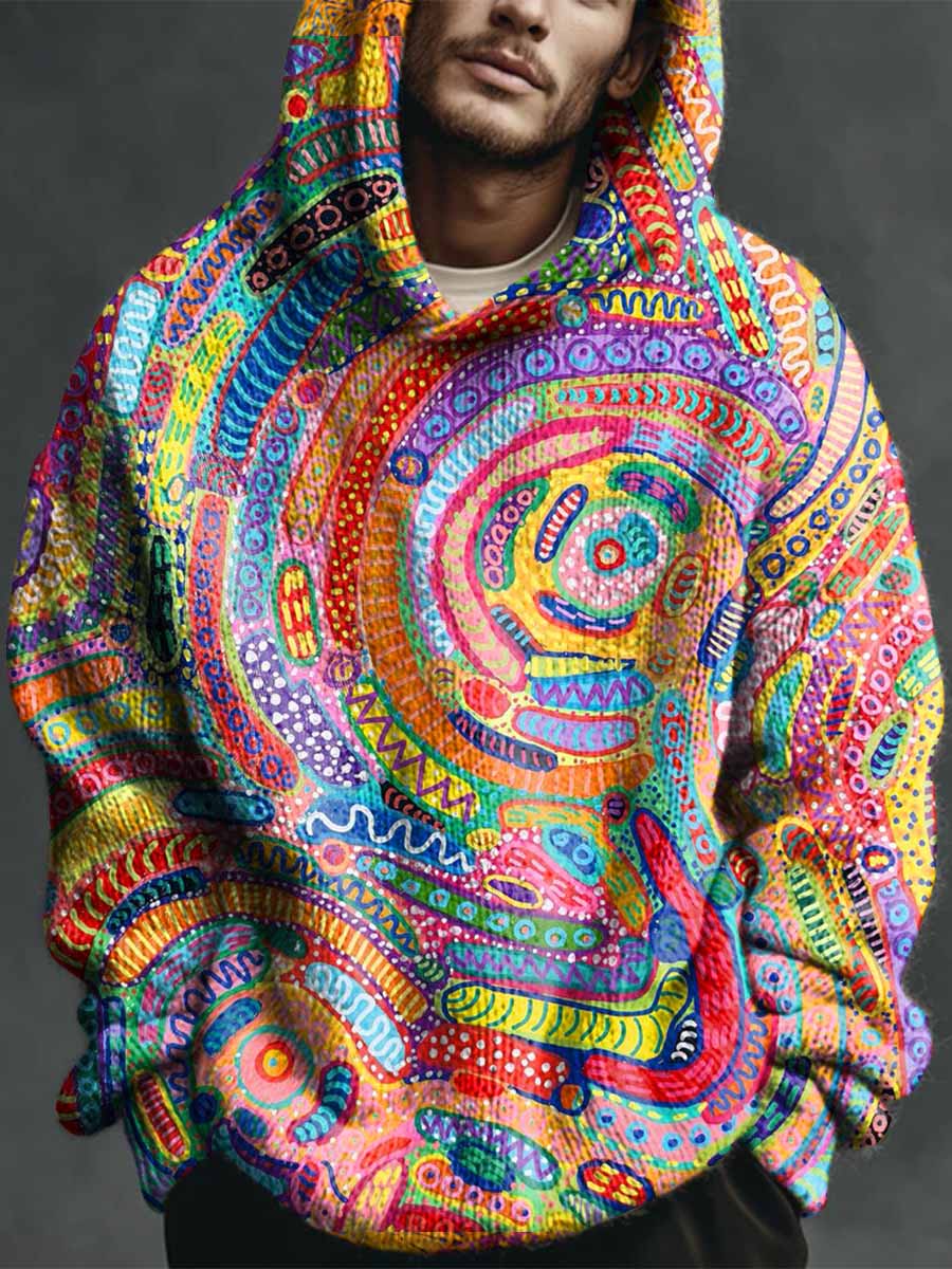 Vintage Colorful Ethnic Geometric Art Print Casual Knitted Hoodie Sweater