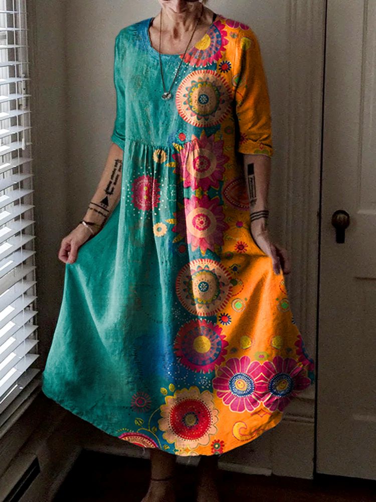 Gender: For Women Style: Casual Fit Type:FIt Shirt Length: Regular Sleeves Length: Long Sleeve Collar: Round Collar Material:Cotton+Linen Material Stretch: No Stretch Pocket :side poctket Weight: 0.300kg Package:1 x Dress