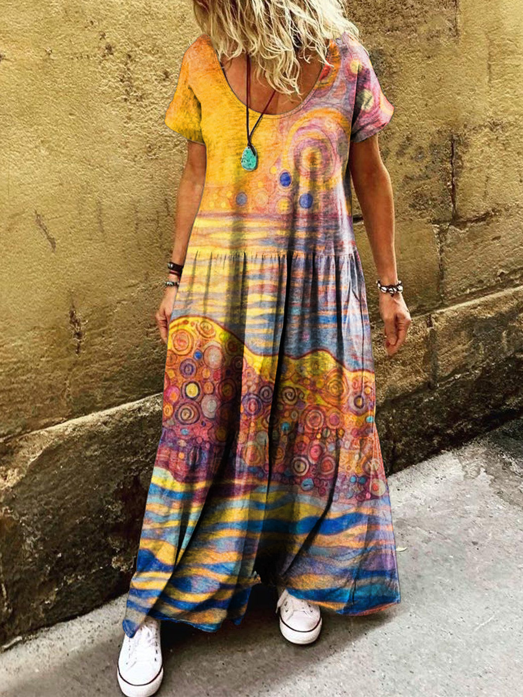 Gender: For Women Style: Casual Fit Type:FIt Shirt Length: Regular Sleeves Length: Short Sleeve Collar: Round Collar Material:Cotton Material Stretch: High Stretch Pocket :side poctket Weight: 0.300kg Package:1 x Dress
