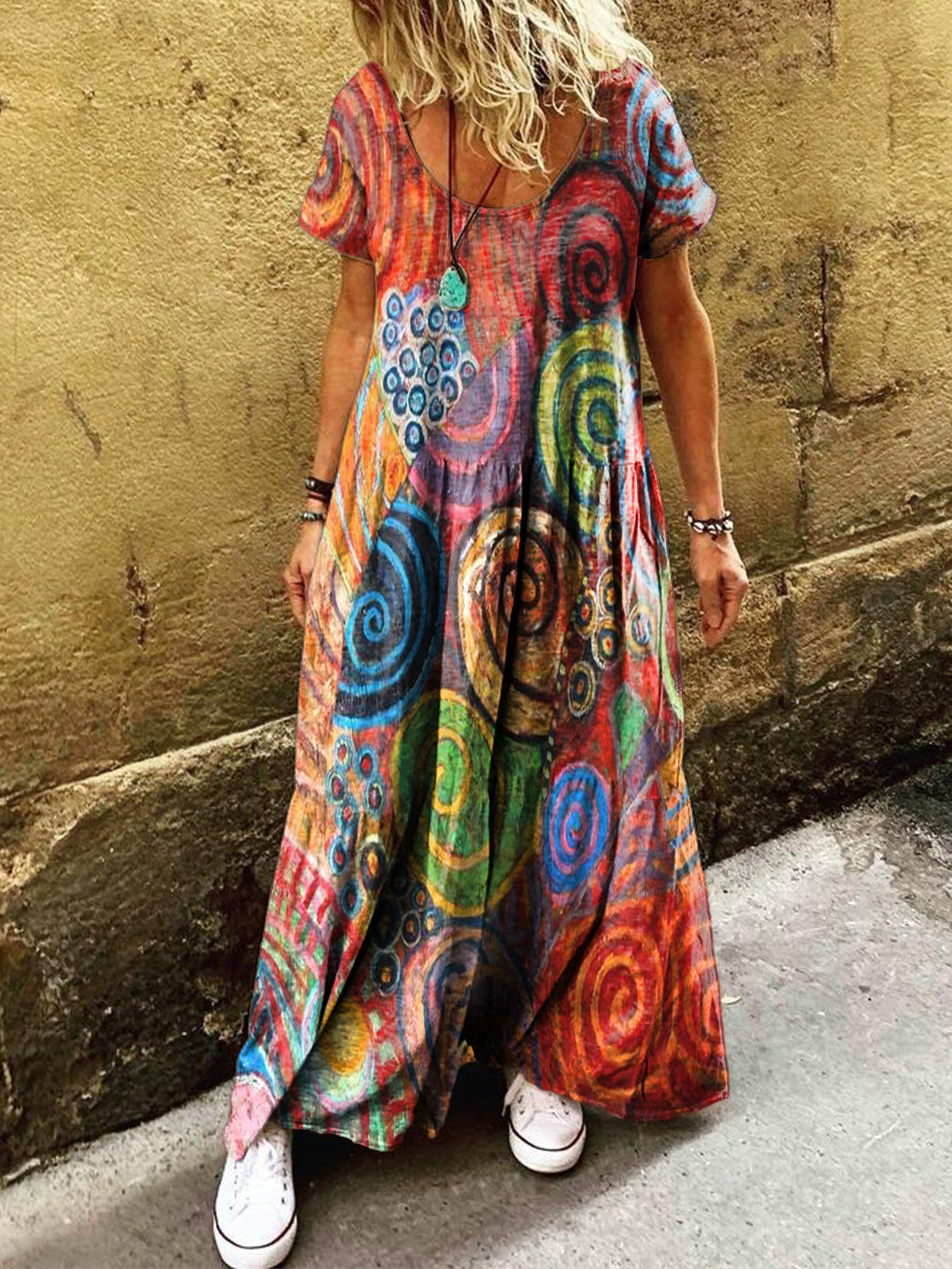 Gender: For Women Style: Casual Fit Type:FIt Shirt Length: Regular Sleeves Length: Short Sleeve Collar: Round Collar Material:Cotton Material Stretch: High Stretch Pocket :side poctket Weight: 0.300kg Package:1 x Dress