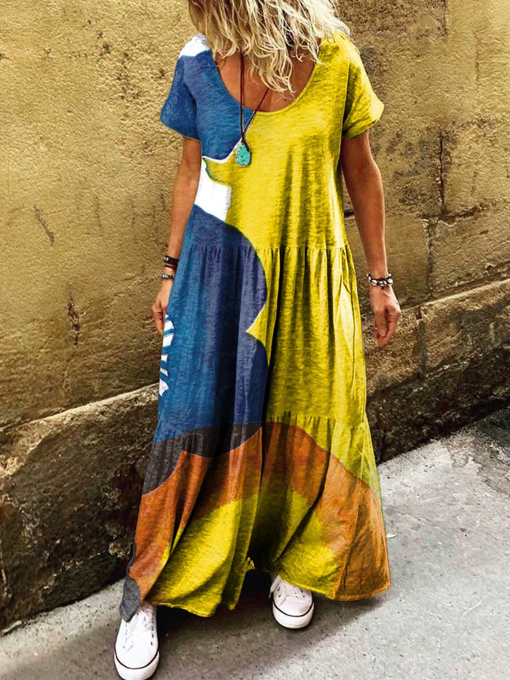 Gender: For Women Style: Casual Fit Type:FIt Shirt Length: Regular Sleeves Length: Short Sleeve Collar: Round Collar Material:Cotton Material Stretch: High Stretch Pocket :side poctket Weight: 0.300kg Package:1 x Dress