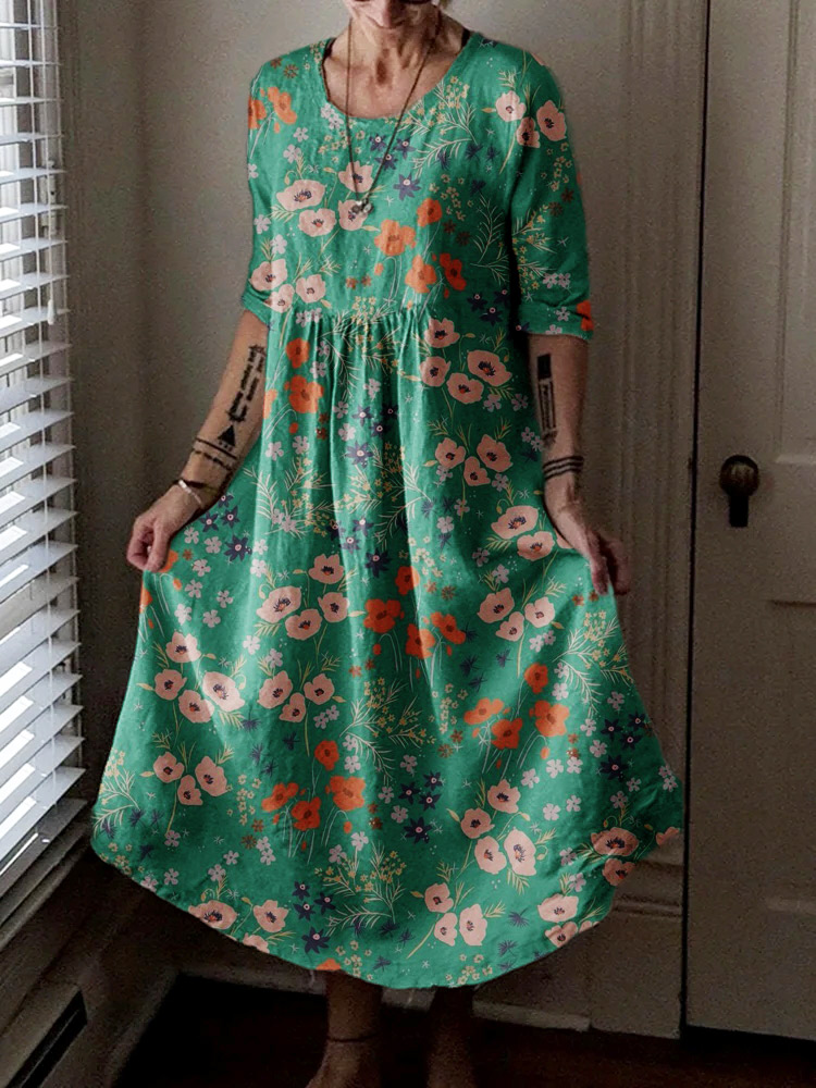 Gender: For Women Style: Casual Fit Type:FIt Shirt Length: Regular Sleeves Length: Long Sleeve Collar: Round Collar Material:Cotton+Linen Material Stretch: No Stretch Pocket :side poctket Weight: 0.300kg Package:1 x Dress