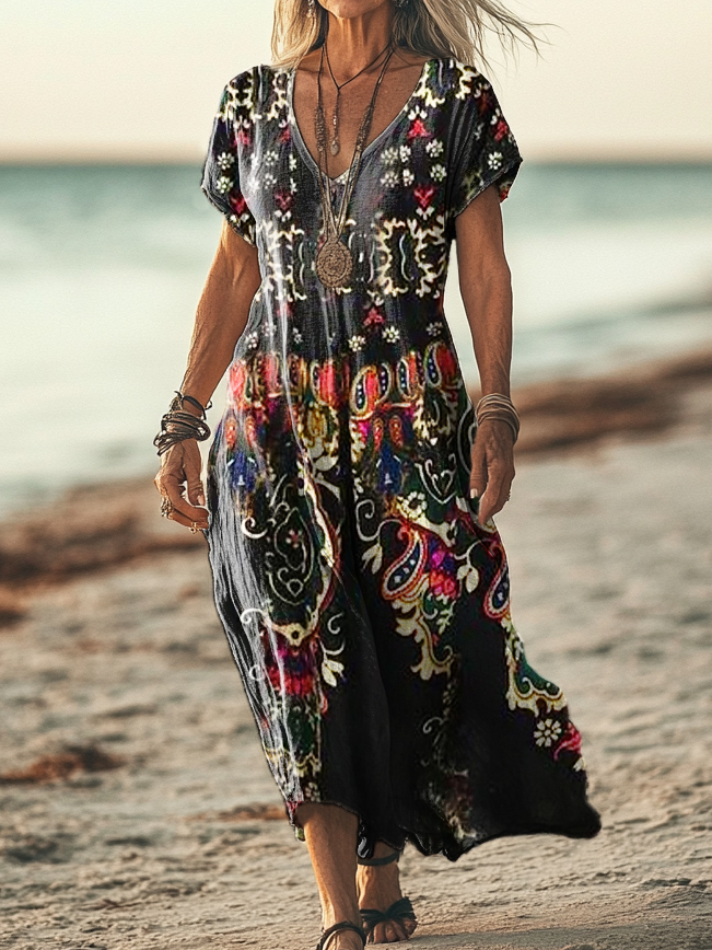 Gender: For Women Style: Casual Fit Type:FIt Shirt Length: Regular Sleeves Length: Short Sleeve Collar: V-Collar Material:Cotton Material Stretch: No Stretch Pocket :Side poctket Weight: 0.300kg Package:1 x Dress
