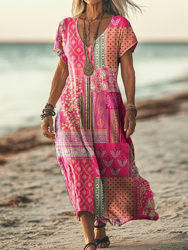 Gender: For Women Style: Casual Fit Type:FIt Shirt Length: Regular Sleeves Length: Short Sleeve Collar: V-Collar Material:Cotton Material Stretch: No Stretch Pocket :Side poctket Weight: 0.300kg Package:1 x Dress