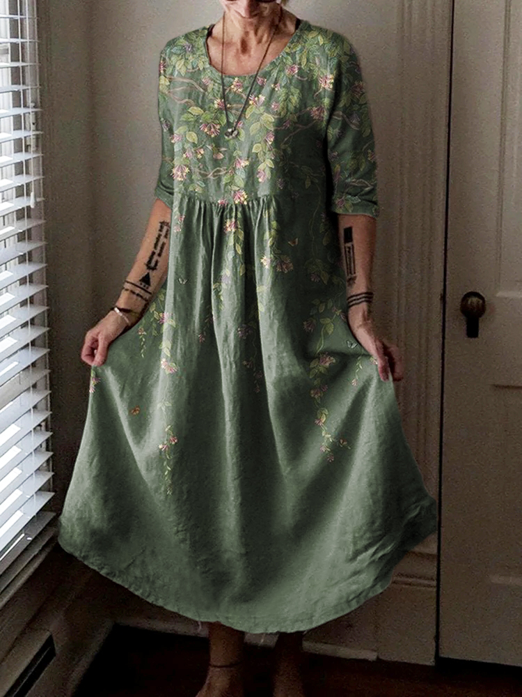 Gender: For Women Style: Casual Fit Type:FIt Shirt Length: Regular Sleeves Length: Long Sleeve Collar: Round Collar Material:Cotton+Linen Material Stretch: No Stretch Pocket :side poctket Weight: 0.300kg Package:1 x Dress