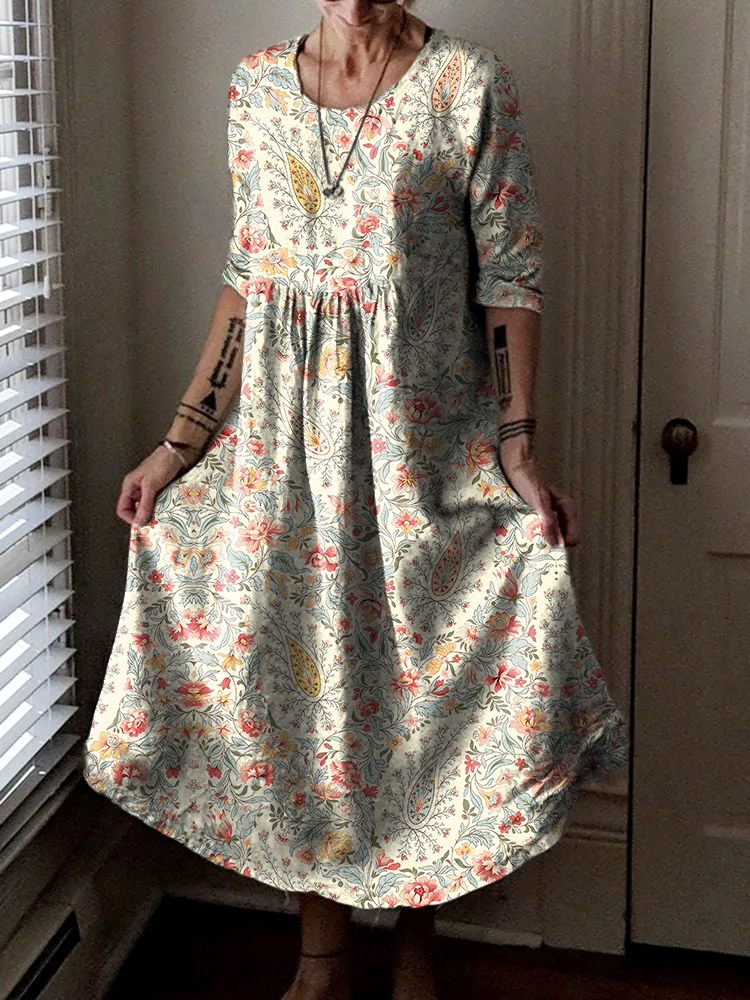 Gender: For Women Style: Casual Fit Type:FIt Shirt Length: Regular Sleeves Length: Long Sleeve Collar: Round Collar Material:Cotton+Linen Material Stretch: No Stretch Pocket :side poctket Weight: 0.300kg Package:1 x Dress