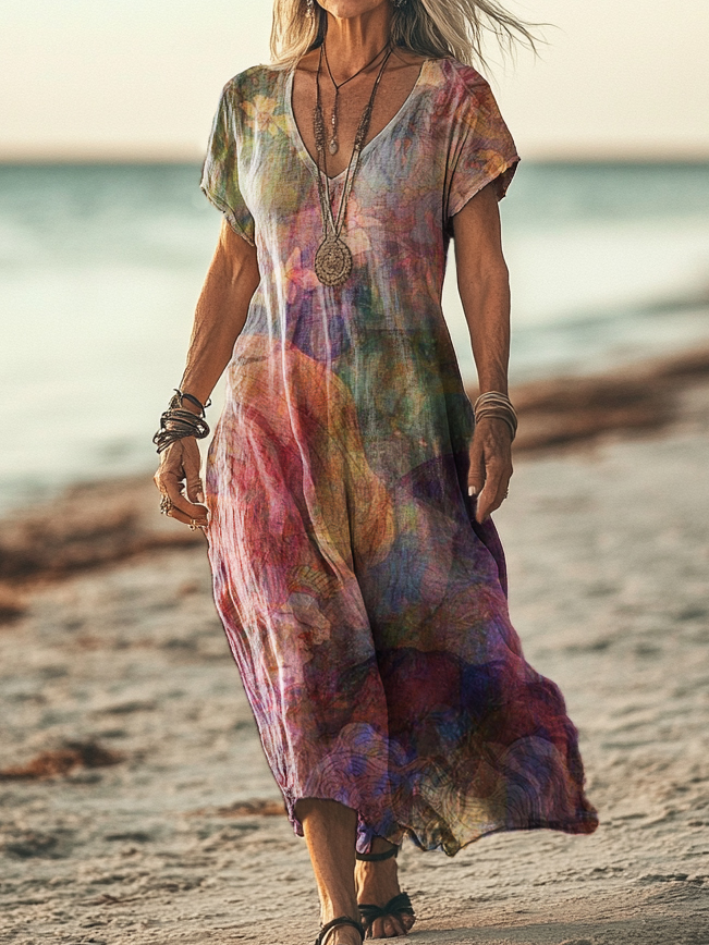 Gender: For Women Style: Casual Fit Type:FIt Shirt Length: Regular Sleeves Length: Short Sleeve Collar: V-Collar Material:Cotton Material Stretch: No Stretch Pocket :Side poctket Weight: 0.300kg Package:1 x Dress