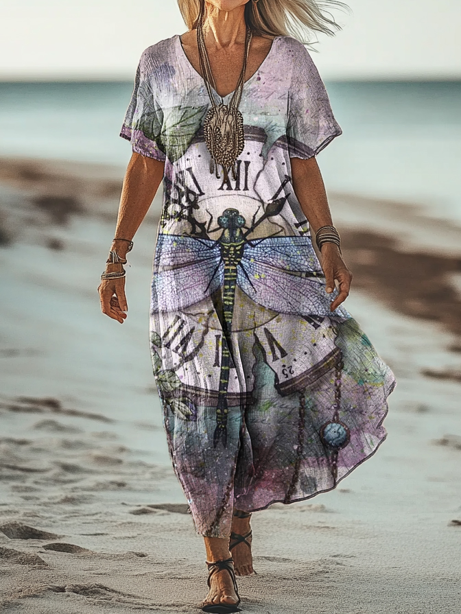 Gender: For Women Style: Casual Fit Type:FIt Shirt Length: Regular Sleeves Length: Short Sleeve Collar: V-Collar Material:Cotton Material Stretch: No Stretch Pocket :Side poctket Weight: 0.300kg Package:1 x Dress