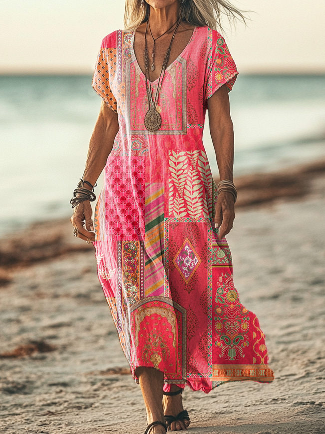 Gender: For Women Style: Casual Fit Type:FIt Shirt Length: Regular Sleeves Length: Short Sleeve Collar: V-Collar Material:Cotton Material Stretch: No Stretch Pocket :Side poctket Weight: 0.300kg Package:1 x Dress