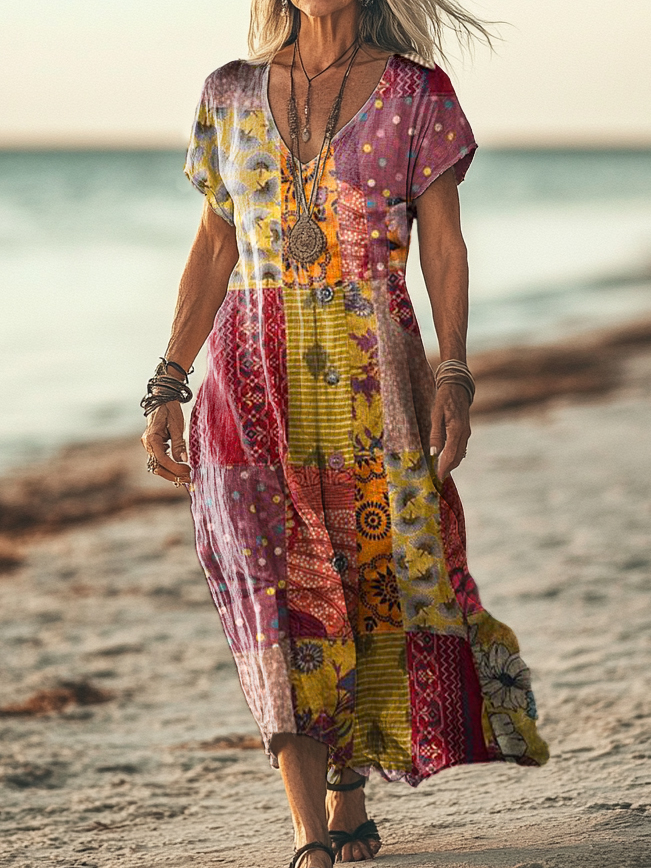 Gender: For Women Style: Casual Fit Type:FIt Shirt Length: Regular Sleeves Length: Short Sleeve Collar: V-Collar Material:Cotton Material Stretch: No Stretch Pocket :Side poctket Weight: 0.300kg Package:1 x Dress
