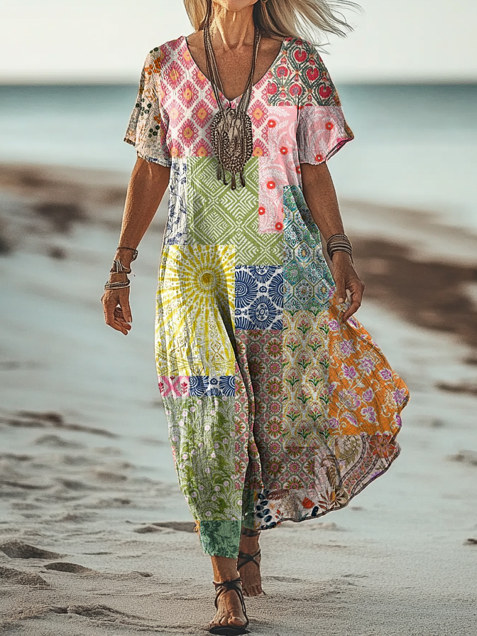 Gender: For Women Style: Casual Fit Type:FIt Shirt Length: Regular Sleeves Length: Short Sleeve Collar: V-Collar Material:Cotton Material Stretch: No Stretch Pocket :Side poctket Weight: 0.300kg Package:1 x Dress